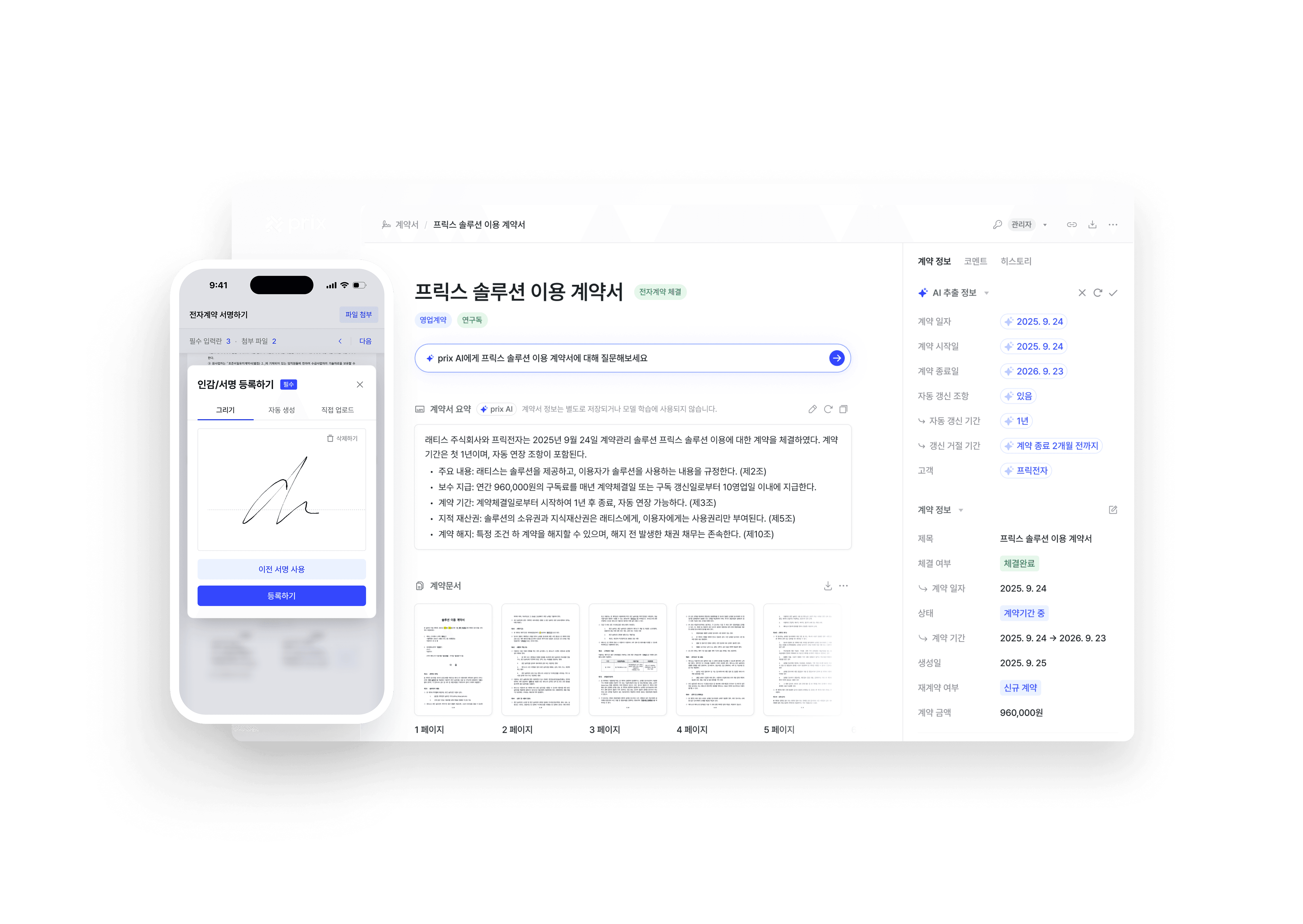 “계약서–견적서–세금계산서, 프릭스 하나로 관리해요”