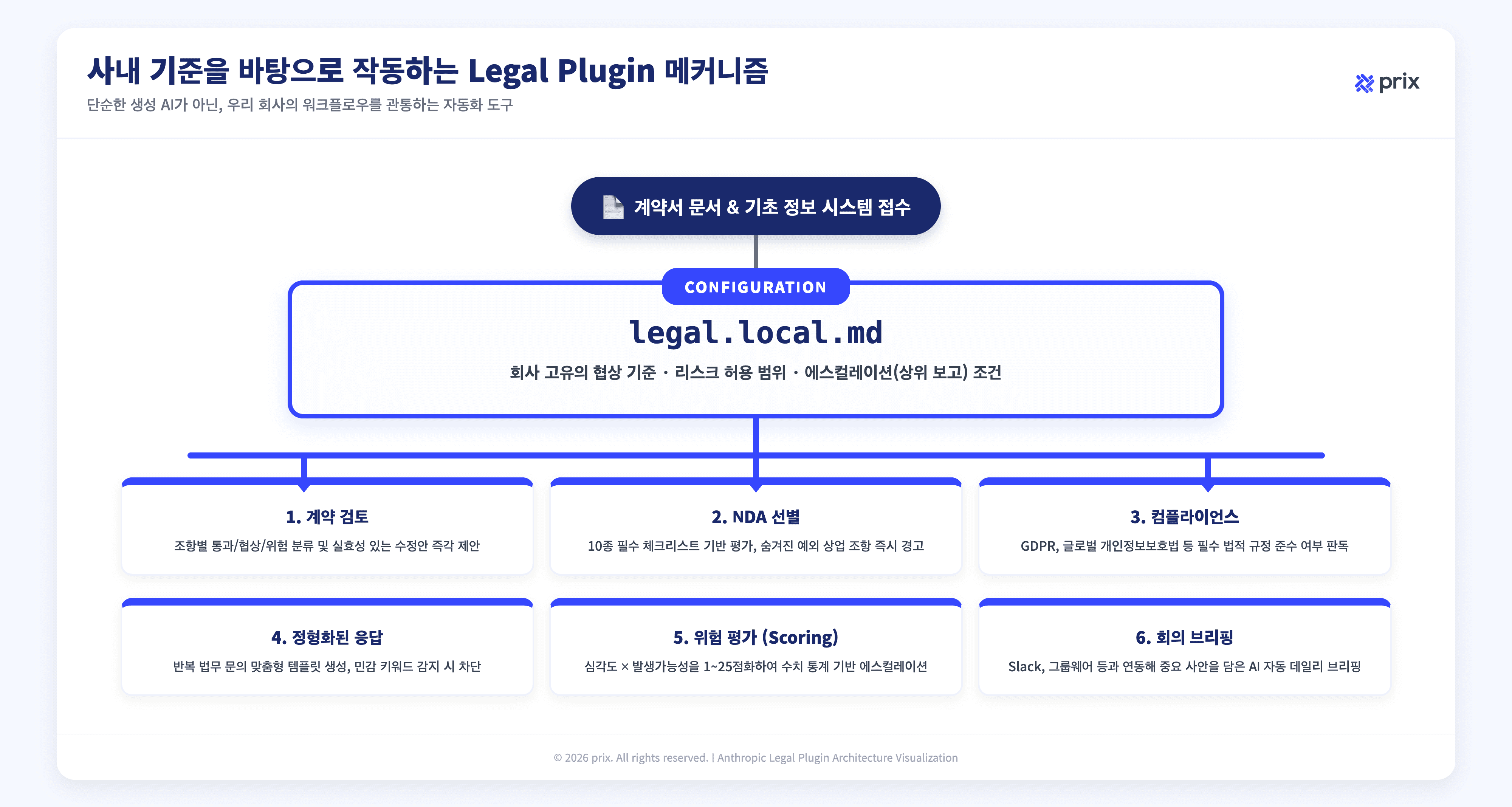 AI 계약관리 솔루션을 만들고 있는 프릭스 팀이 6개 스킬 명세를 전부 뜯어봤습니다. 정교하게 설계된 도구였습니다. 하지만 동시에, 이 도구가 전사 단위로 작동하려면 무엇이 더 필요한지도 보였습니다.