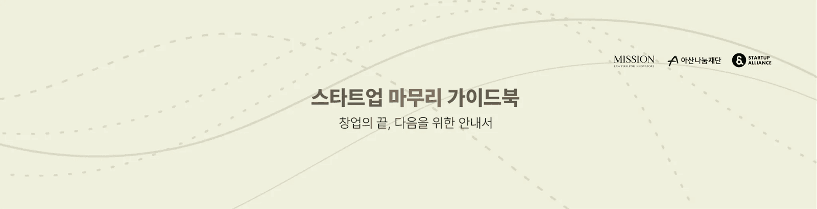 사진: 미션에서 만든 스타트업 마무리 가이드북, 콘텐츠 전문은 아산나눔재단(링크)에서 확인할 수 있다.