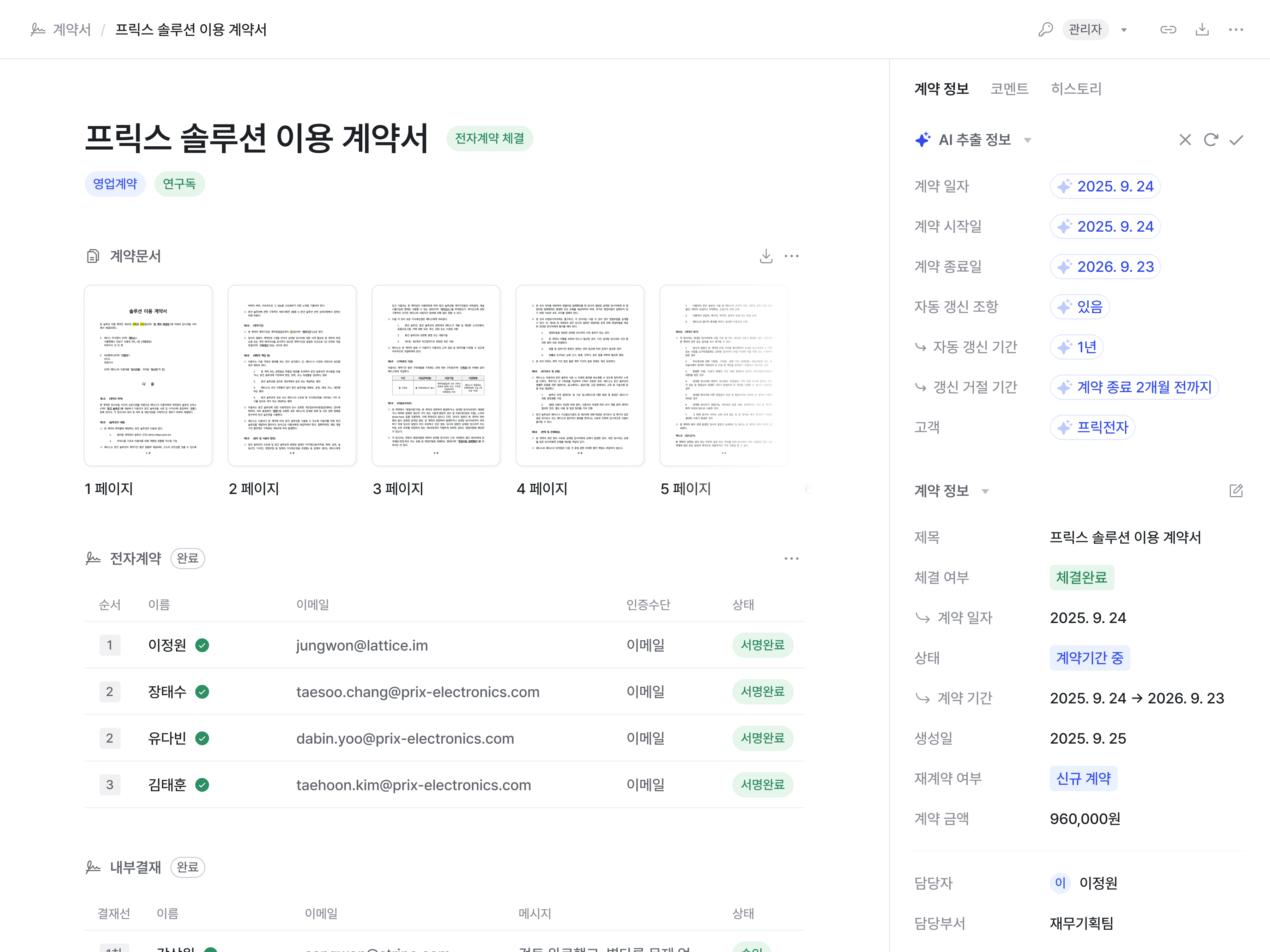전자서명 전, 프릭스에서 내부결재나 법무검토까지 진행할 수 있습니다.