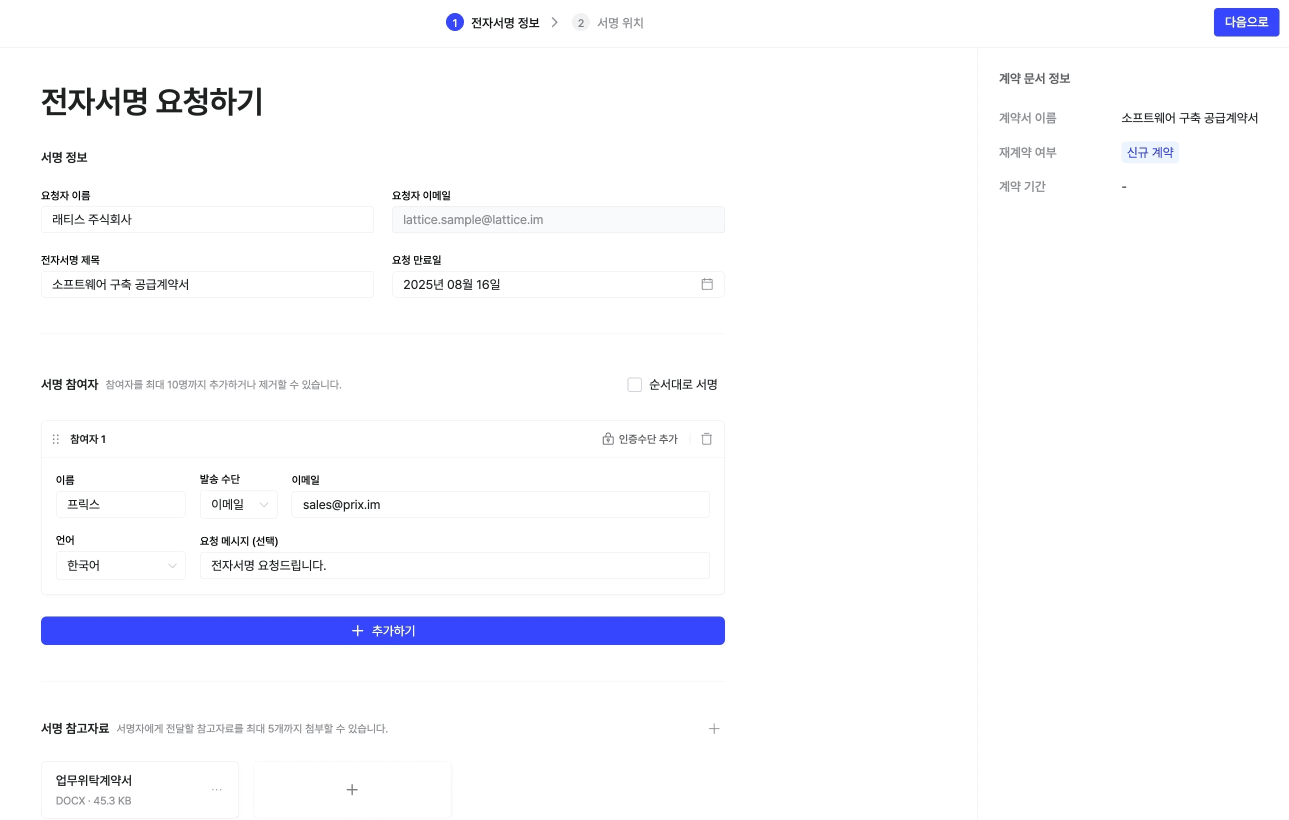 서명자에게 필요한 정보를 사전에 요청하거나, 대면 서명을 진행할 수도 있습니다.