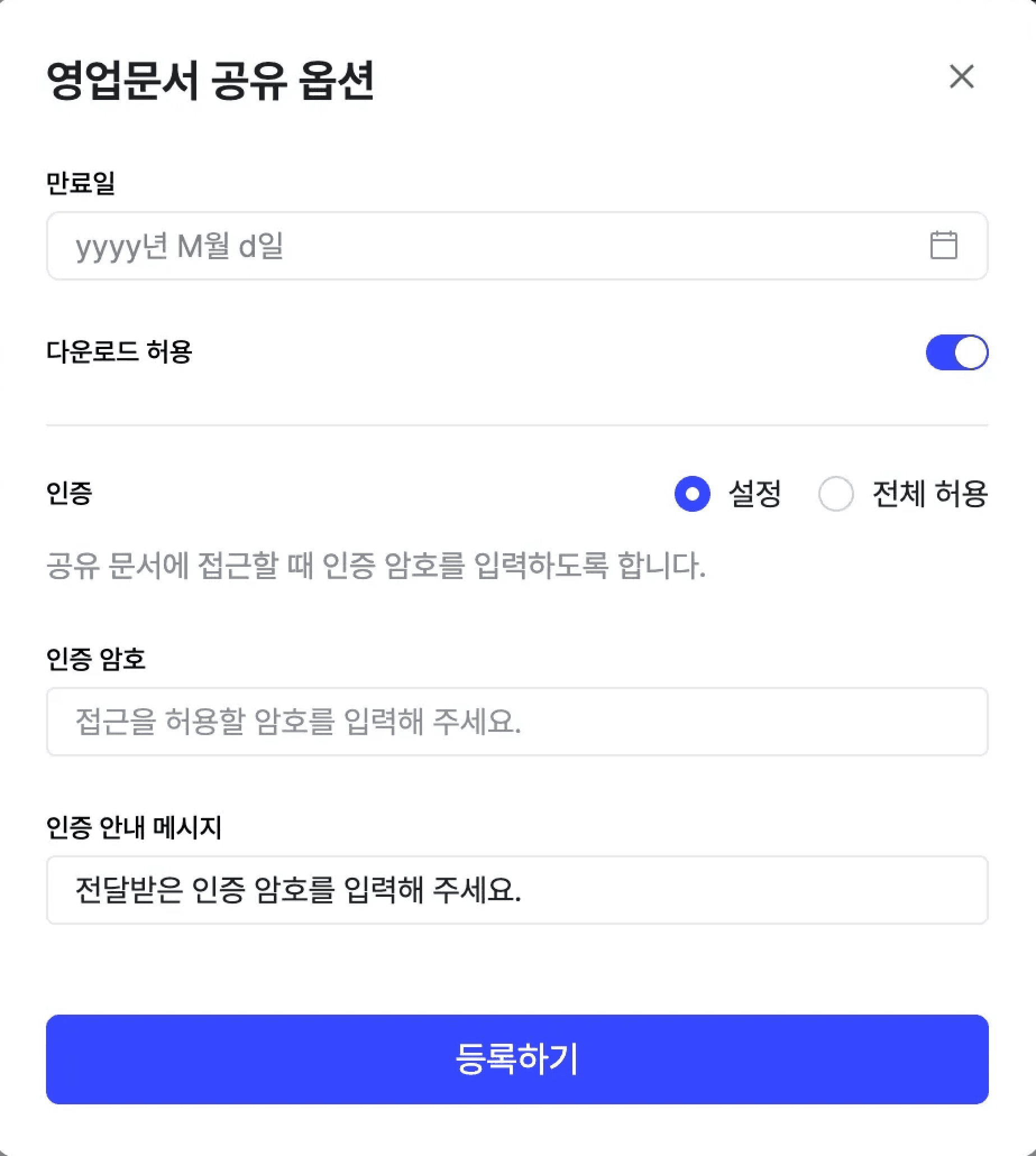 모든 영업문서는 이메일이나 카카오톡으로 바로 발송할 수 있습니다.
